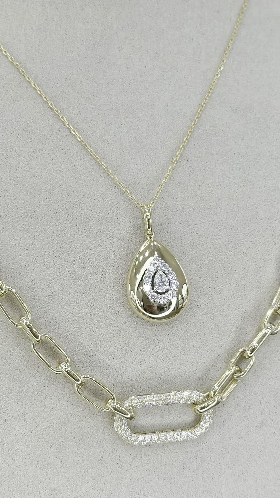 9ct Yellow Gold Pear shape Diamond set Pendant on Chain