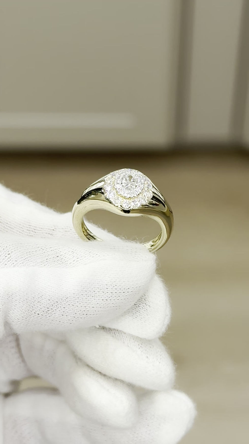 9ct Yellow Gold Oval Halo Diamond set Ring