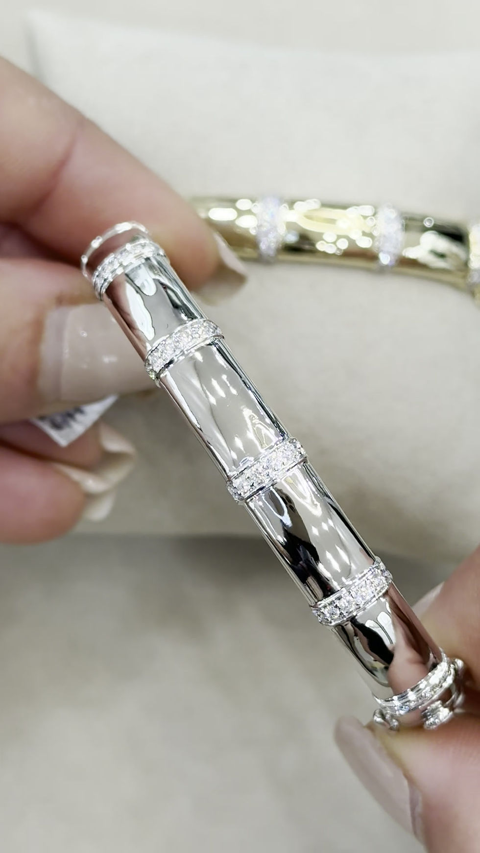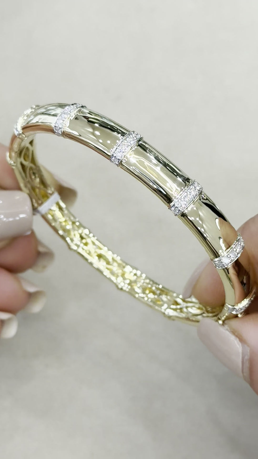 9ct Yellow Gold Wide Diamond set Hinged Bangle